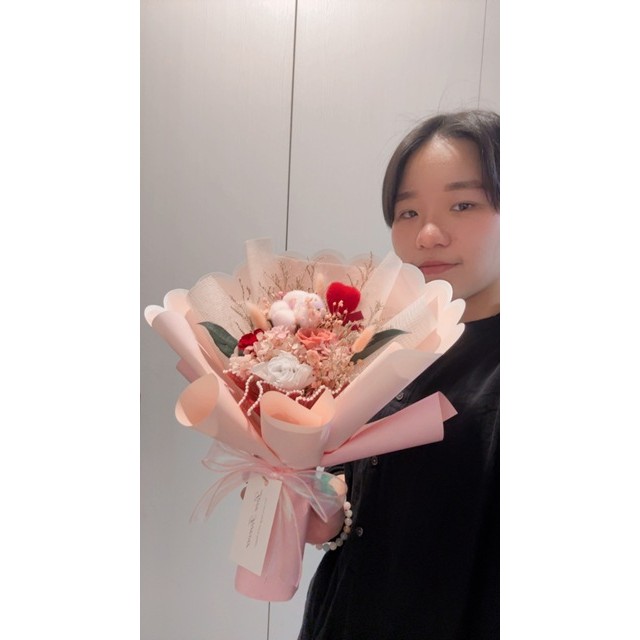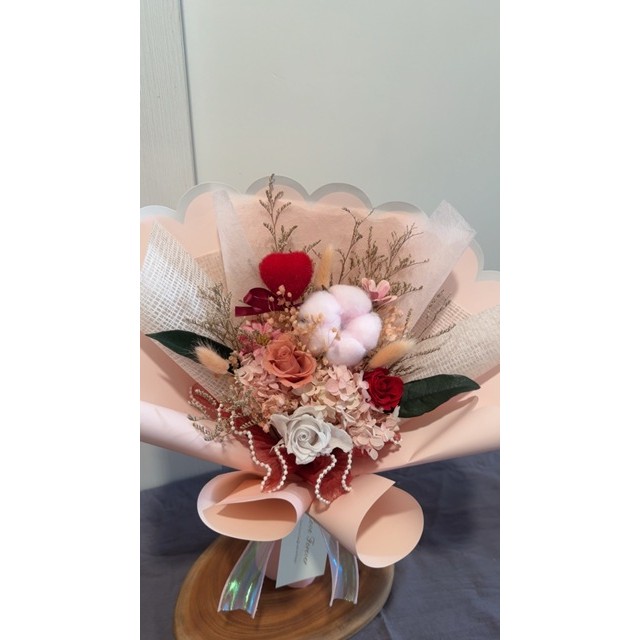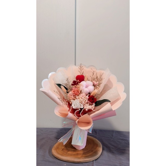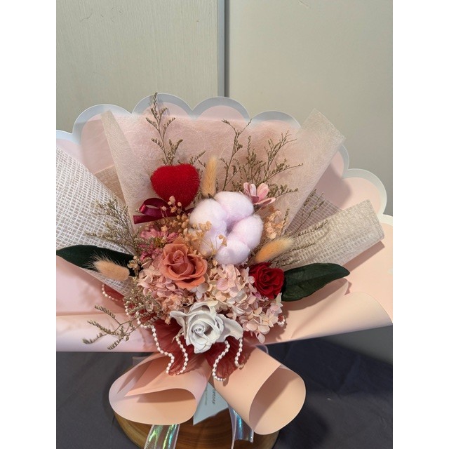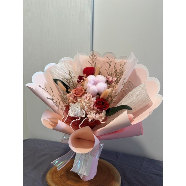 粉色棉花/粉色.紅色永生玫瑰/粉色永生繡球